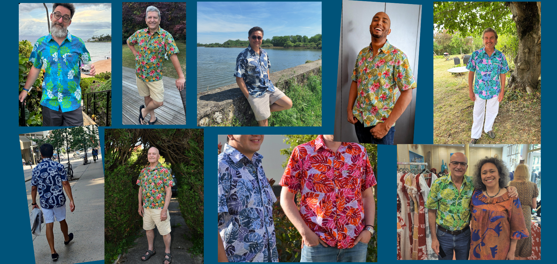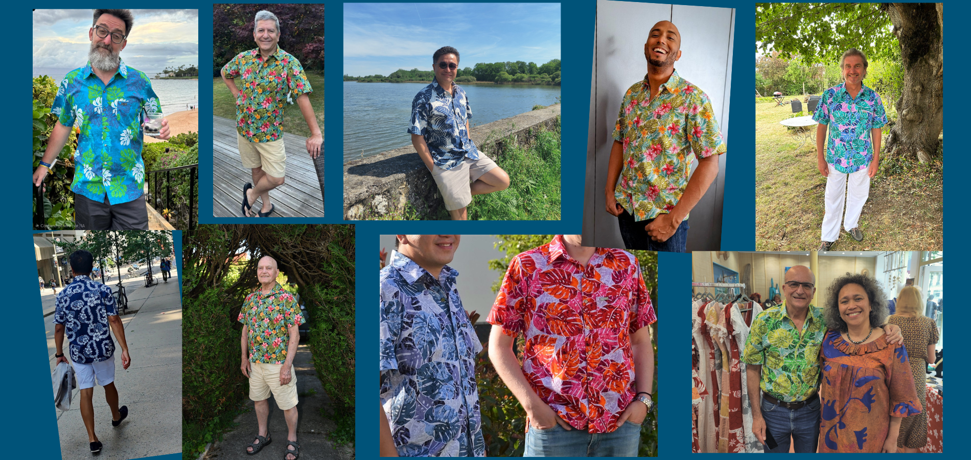 Des chemises pour homme cousues en France, en éditions limitées, avec des tissus rares de Polynésie. Détails raffinés, coupe impeccable, authenticité à chaque couture
